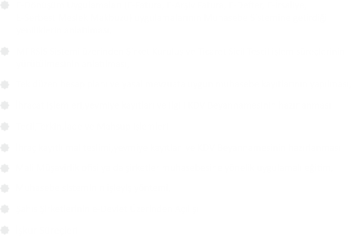 Bu yeni dünya düzeninde KOBİ’lerimizin kuruldukları günden itibaren gelişmek, büyümek, verimli çalışmak, pazar payını arttırmak, yeni bölgelere açılmak, yurt dışına ihracat yapmak, ürün ve hizmet sunmak, rakipleri karşısında öne geçmek gibi temel amaçları olan KOBİ’lerin yönetsel, ticari, kalite ve üretim süreçlerinde ihtiyaç duydukları sorunları tarafsız bir göz ile iş süreçlerini en başında analiz ederek hedeflerine ulaşmalarına katkı sağlıyoruz.